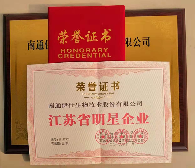 南通伊仕生物技術(shù)股份有限公司榮獲江蘇省明星企業(yè)稱號 |